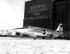 ![]() The CF-104 aircraft, tail number 12700, used by W/C Bud White to set a Canadian altitude record for a jet aircraft. This was a Centennial Project of the Aerospace Engineering Test Establishment which was located at RCAF Station Uplands in Ottawa. |