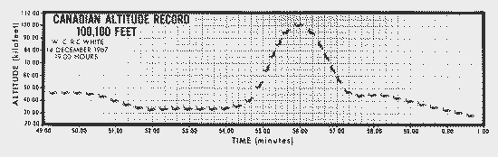 ![]() Plot of the altitude of Bud White's aircraft during his record-breaking flight. The measurements were made from the new Satellite Communications facility at Building 46. |